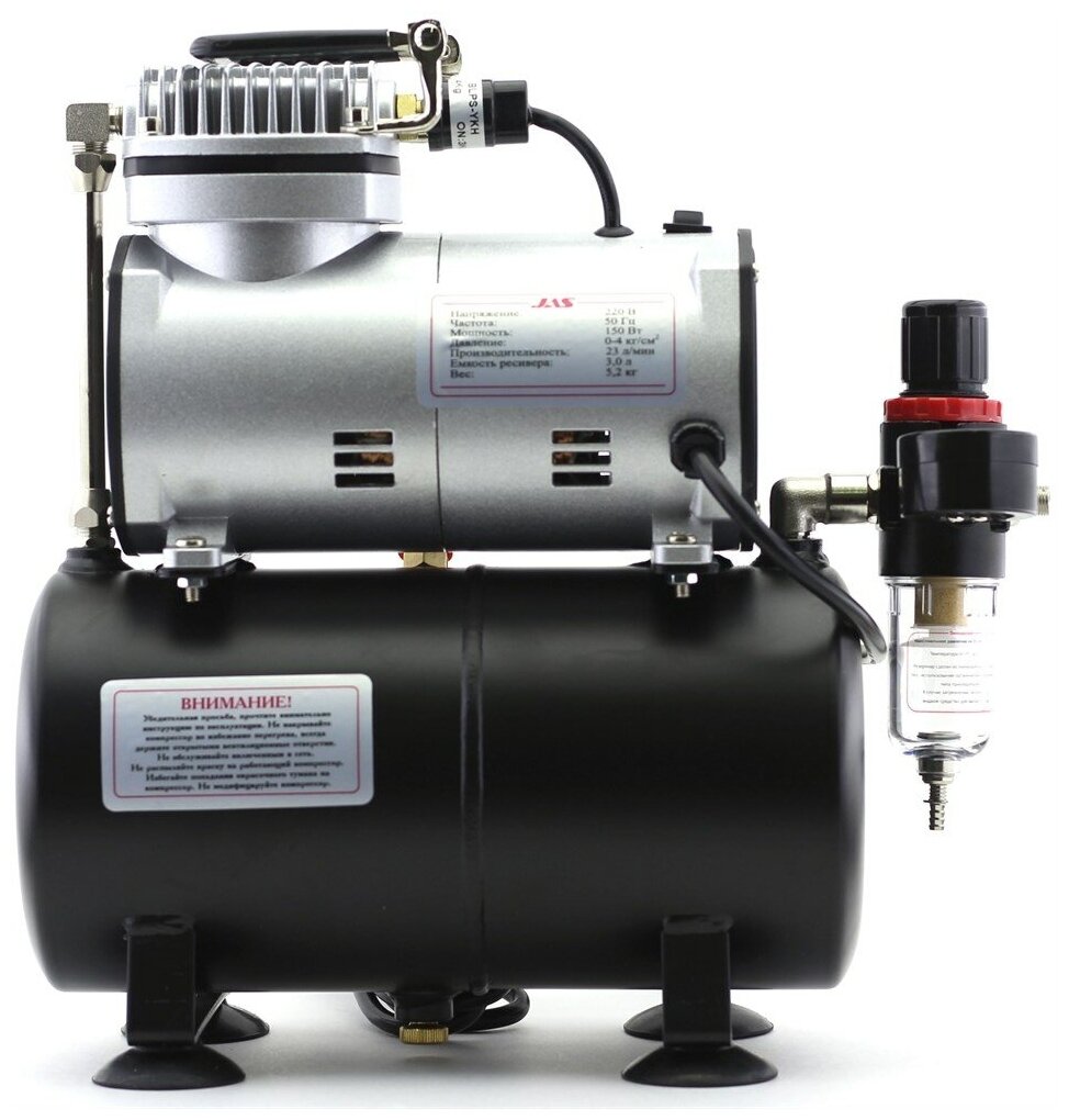 Аэрография не возможна без надлежащего источника воздуха. Для нормальной работы нам нужен воздух с определённым давлением. Каждый аэрограф имеет разные требования к давлению воздуха. Таким образом, если у вас уже есть аэрограф, то нужно выбирать компрессор, учитывая его требования.