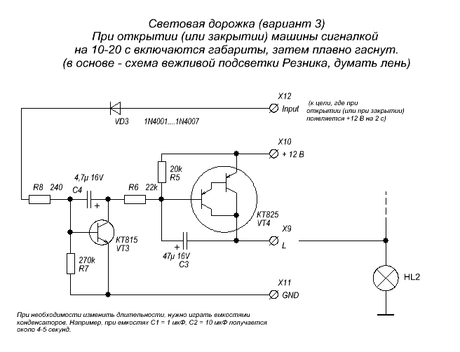 Плавное включение ближнего света фар схема