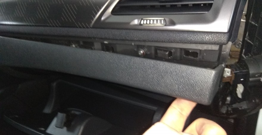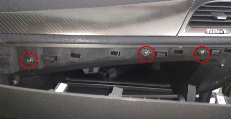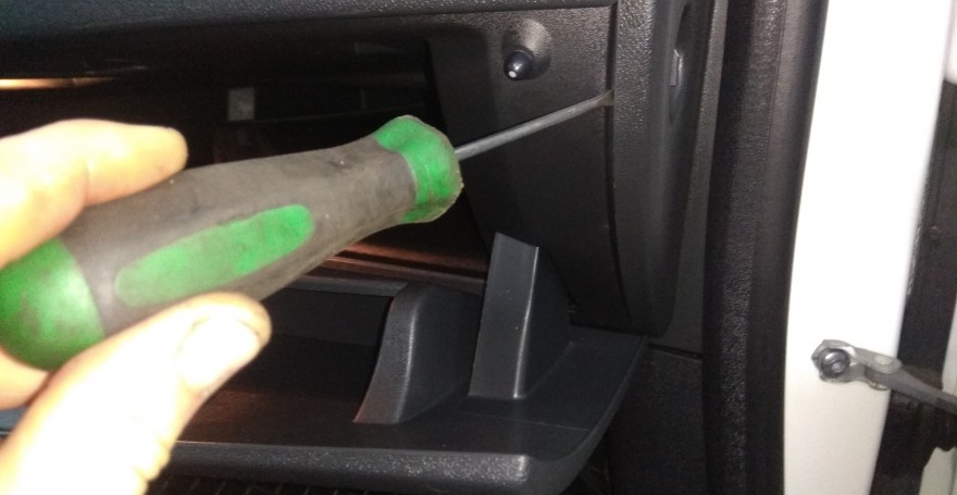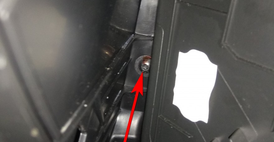 Под ней обнаруживаем винта, откручиваем их, далее открываем вещевой ящик и находим еще один винт — откручиваем