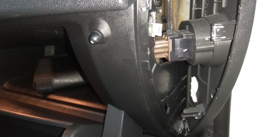 - Перед тем как приступить к замене сначала откройте бардачок, после этого нужно отстегнуть наружную так называемую накладку самой панели, на которой располагается замок для отключения подушек безопасности переднего пассажира, замочек также необходимо снять.
