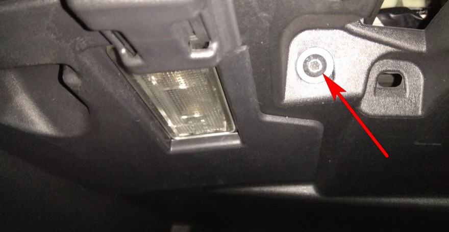 - Вкрутите все 6 болтов в корпус, непременно начиная с наиболее неудобного, который находится рядом с плафоном, после этого можно смело ставить назад накладку непосредственно верхней части всей панели.