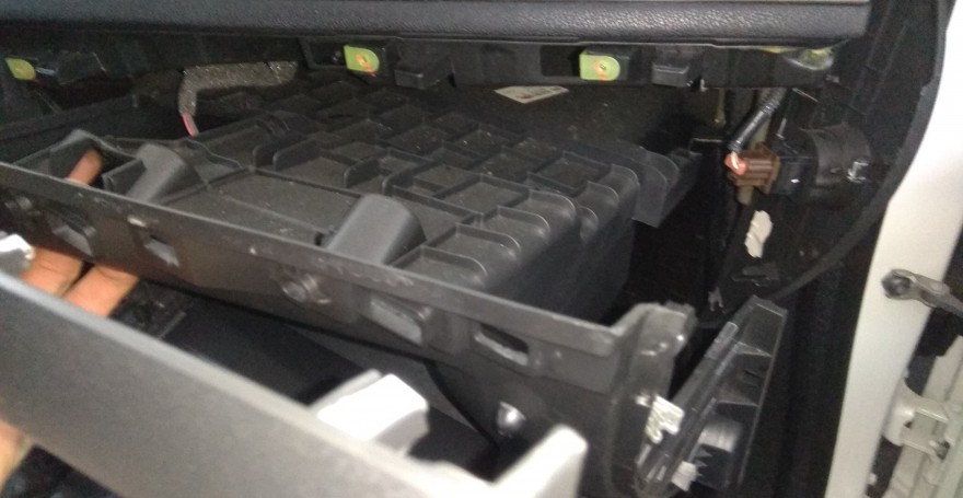 Для замены салонного фильтра необходимо снять бардачок.