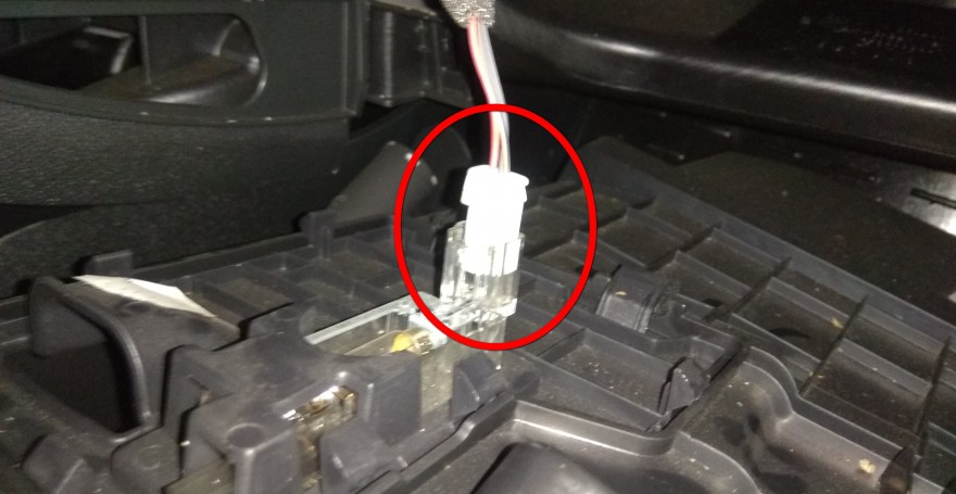 Отсоединяем разъем от плафона подсветки и убираем бардачок в сторону.