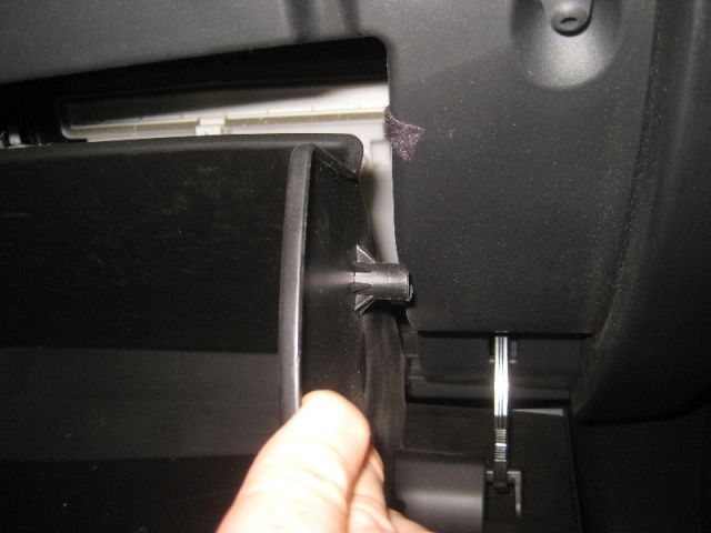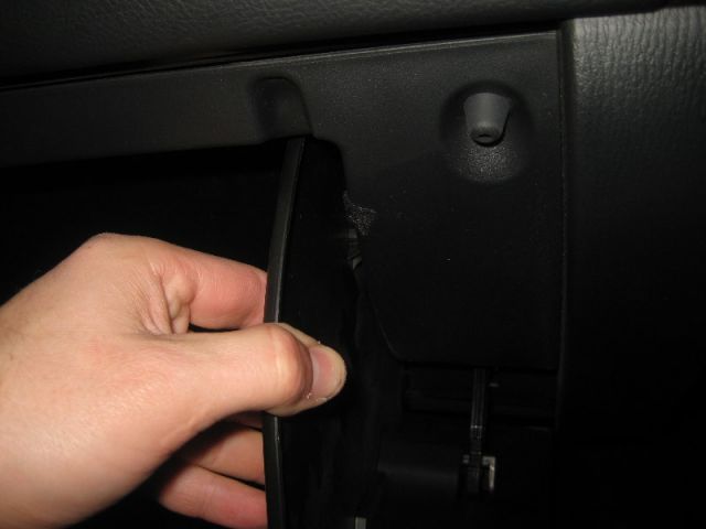 - Отсоединить фиксатор выхода бардачка справа.