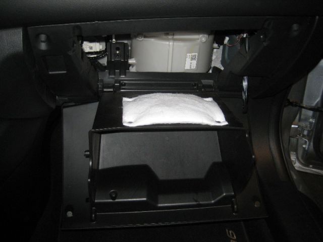 Доступ к салонному фильтру автомобиля «Мазда-6» осуществляется через бардачок. Открываем его.