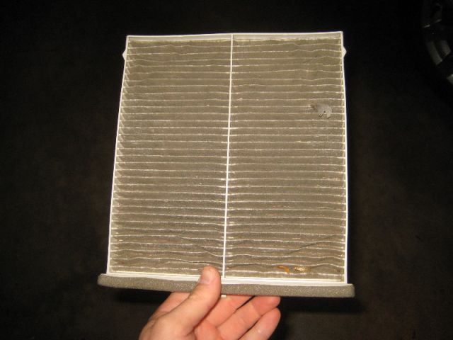 Грязный фильтр воздуха в салоне автомобиля «Мазда-6» выглядит именно так – непрезентабельно. Однако, не забудьте, что некоторые модели фильтров имеют пропитку и поэтому даже новыми они не будут иметь белоснежного вида.