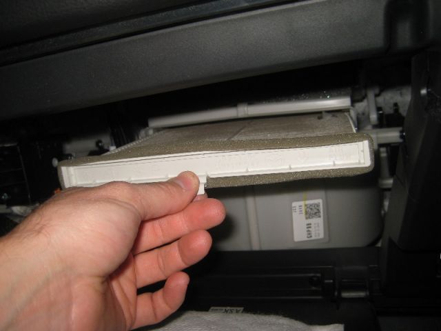 Камера с фильтром располагается прямо за бардачком (перчаточный ящик).