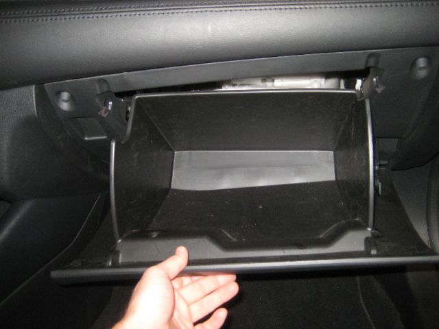 Замена фильтра салона на MAZDA 6 производится через бардачок, после его открытия необходимо сжать его края в районе ограничителей и отстегнуть с правой стороны ограничитель хода, после чего он легко снимается в сторону пассажирской двери.